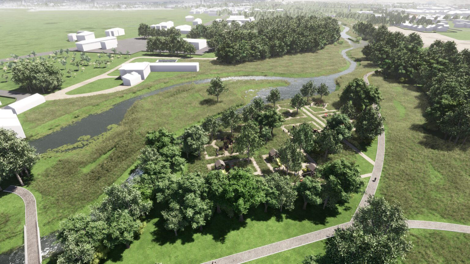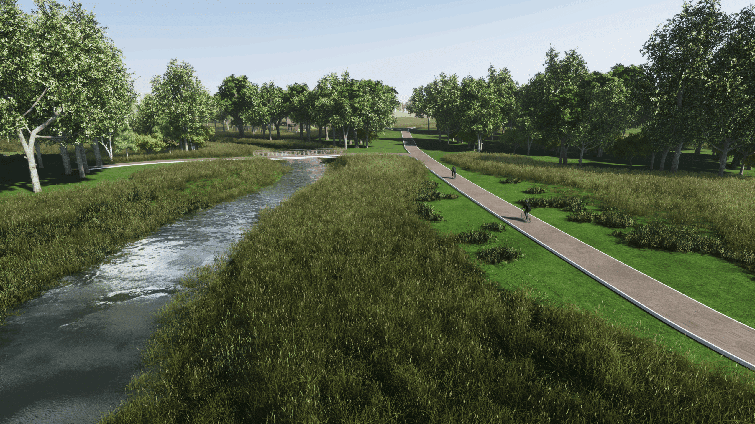 La visione del progetto nasce dall’idea di restituire continuità al sistema fluviale, trasformandolo in un parco accessibile, riconoscibile e capace di esprimere il valore ambientale del Marzenego. L’obiettivo è ricucire i percorsi, ampliare gli spazi pubblici e ricreare una relazione equilibrata tra ecosistema, mobilità dolce e attività all’aperto.