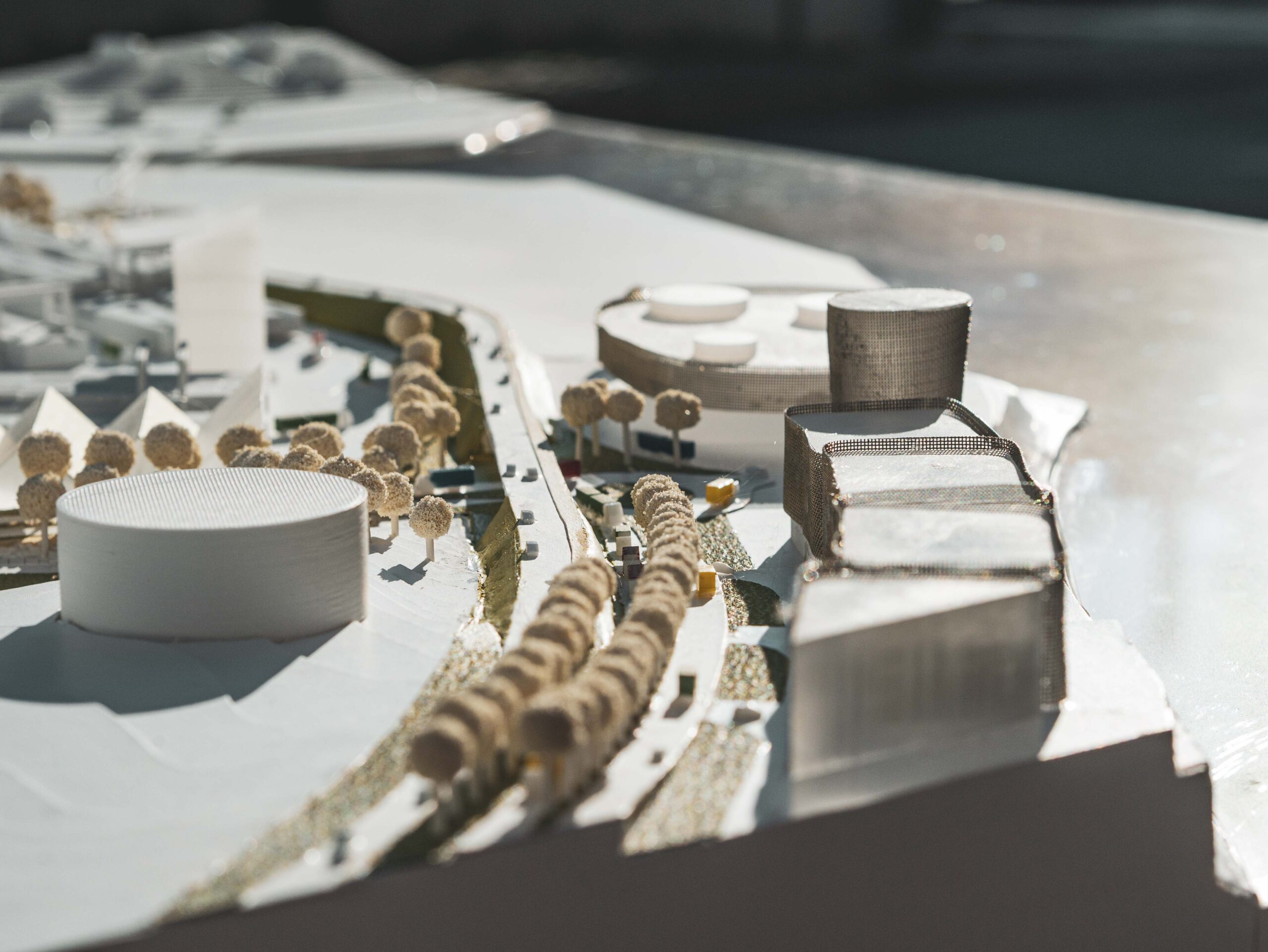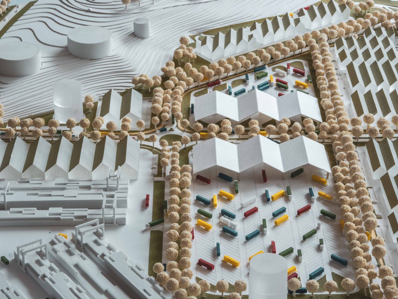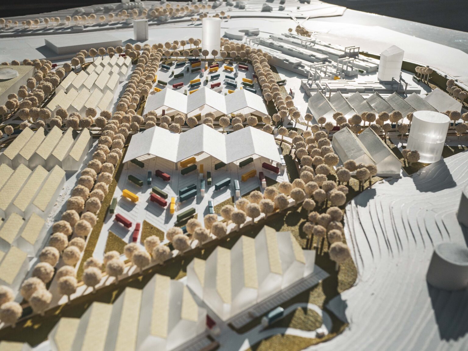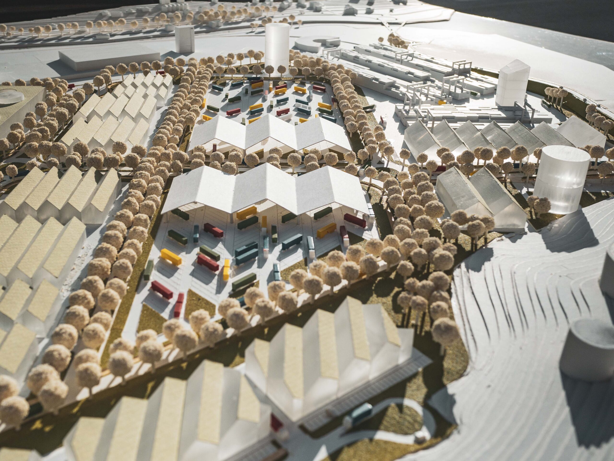 La viabilità è ripensata con nuove rotatorie, percorsi dedicati e un sistema di collegamenti interno ordinato e sicuro. L’intervento, che non genera traffico aggiuntivo, risolve criticità legate alla sosta impropria e contribuisce alla sicurezza del trasporto e alla qualità del paesaggio industriale.