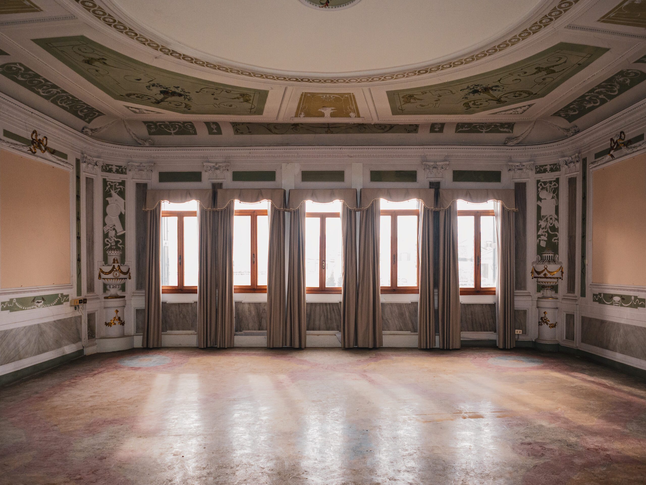 L’adeguamento impiantistico, progettato con grande attenzione, si inserisce nei controsoffitti, negli arredi e negli interstizi strutturali, garantendo comfort contemporaneo senza interferire con le geometrie e le decorazioni. I percorsi verticali vengono resi più sicuri e accessibili grazie all’inserimento calibrato di una nuova scala e all’adeguamento del sistema di collegamento interno.