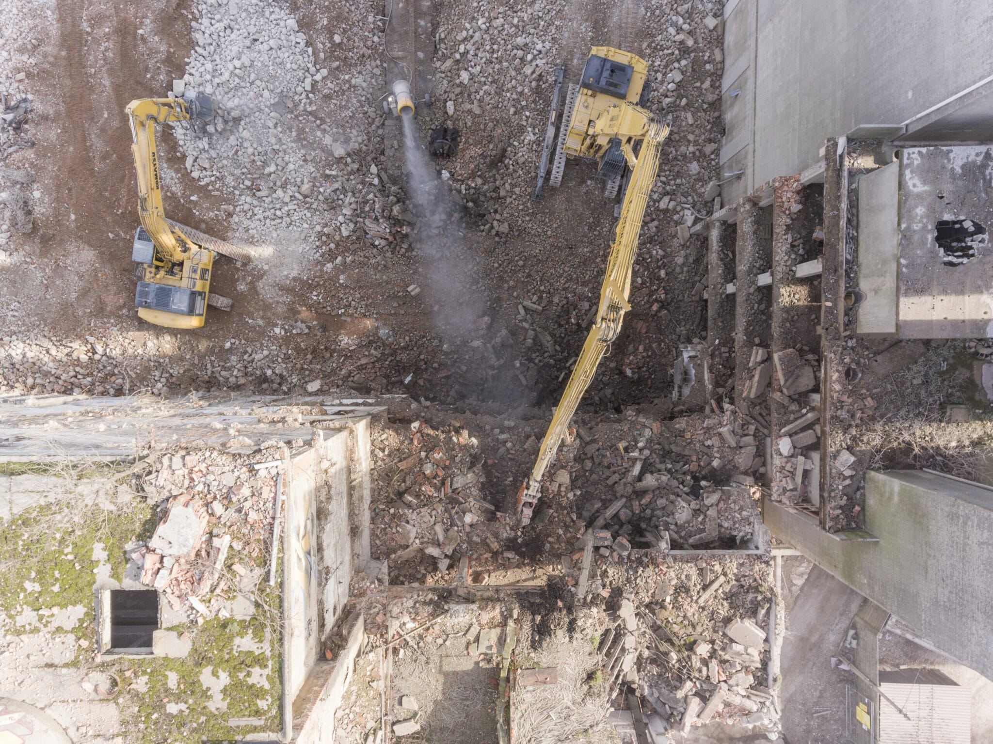 L’intervento ha previsto di demolire tutti gli edifici ancora esistenti all’interno dell’area fino al piano campagna con esclusione delle fondazioni e dei piani interrati.